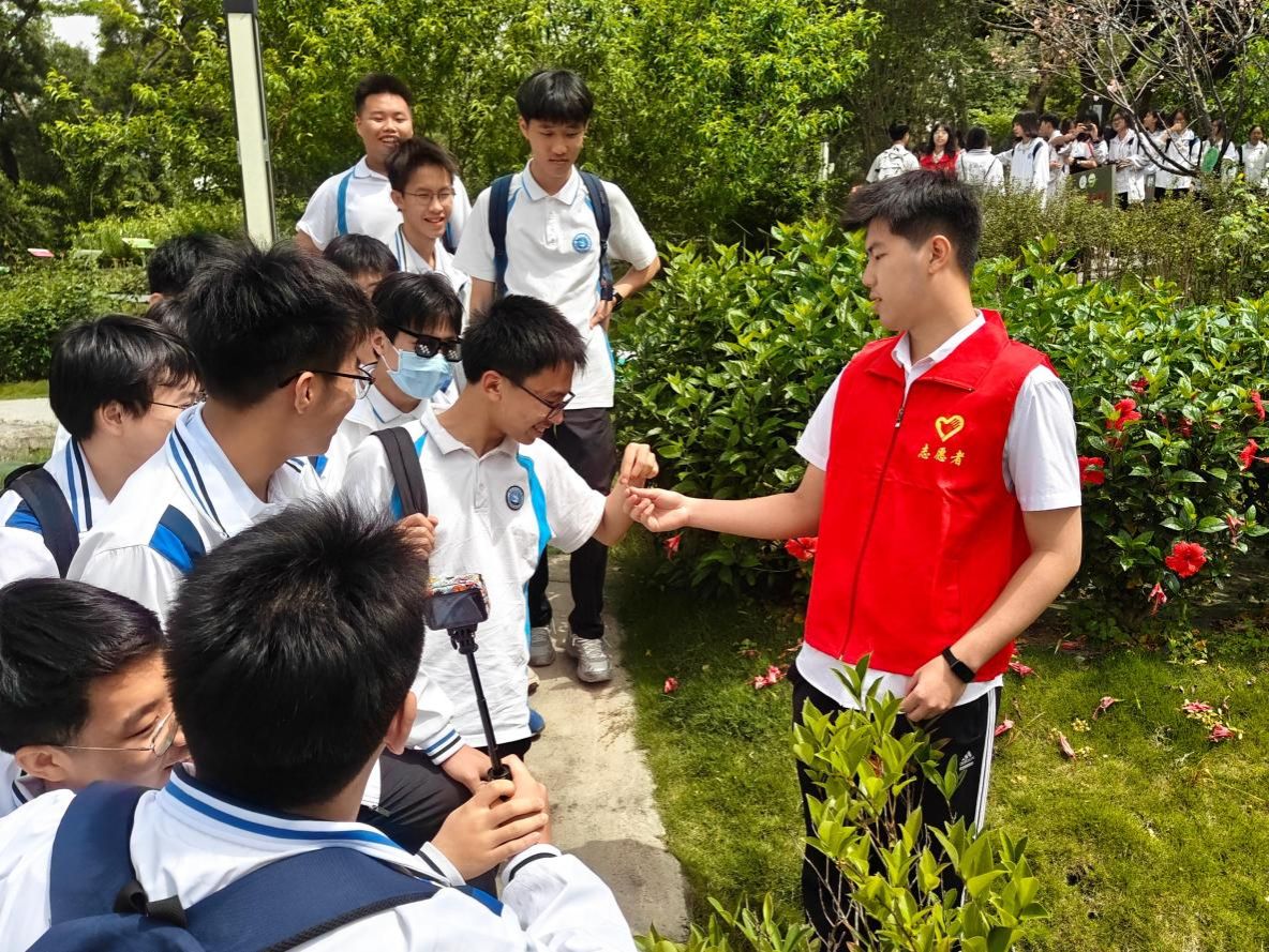 沉浸式体验,感悟中医药底蕴。活动当天,在学院师生志愿者的引导下,均安中学师生分组参观了广东中医药博物馆、37000cm威尼斯药用植物室外教学基地等。通过近距离观察中医药文物、亲近岭南特色药用植物,中学生们直观感受到中医药学的学科魅力与大学校园之美。